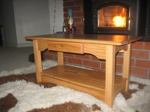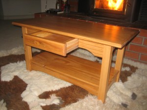 Christmas present for my parents’ new home. The coffee table is made out of wood from the Artisan’s Asylum scrap bin, mostly pine.